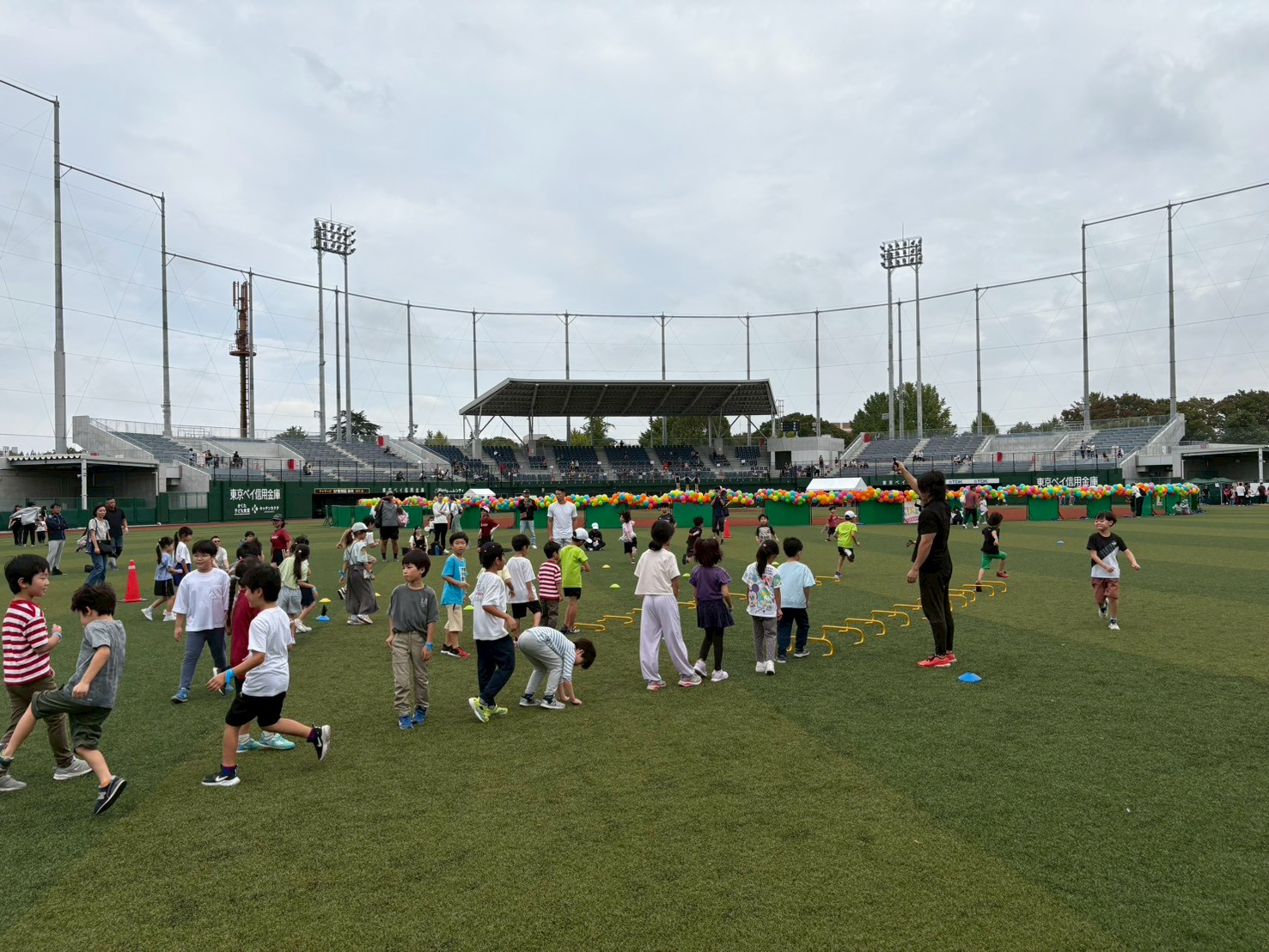 チアダンス体験や走り方教室ではメンバーが講師として活躍し、ストラックアウトやモルック等のブースも多くの子供たちや親子が汗を流しながら楽しんでいる姿が印象的でした。