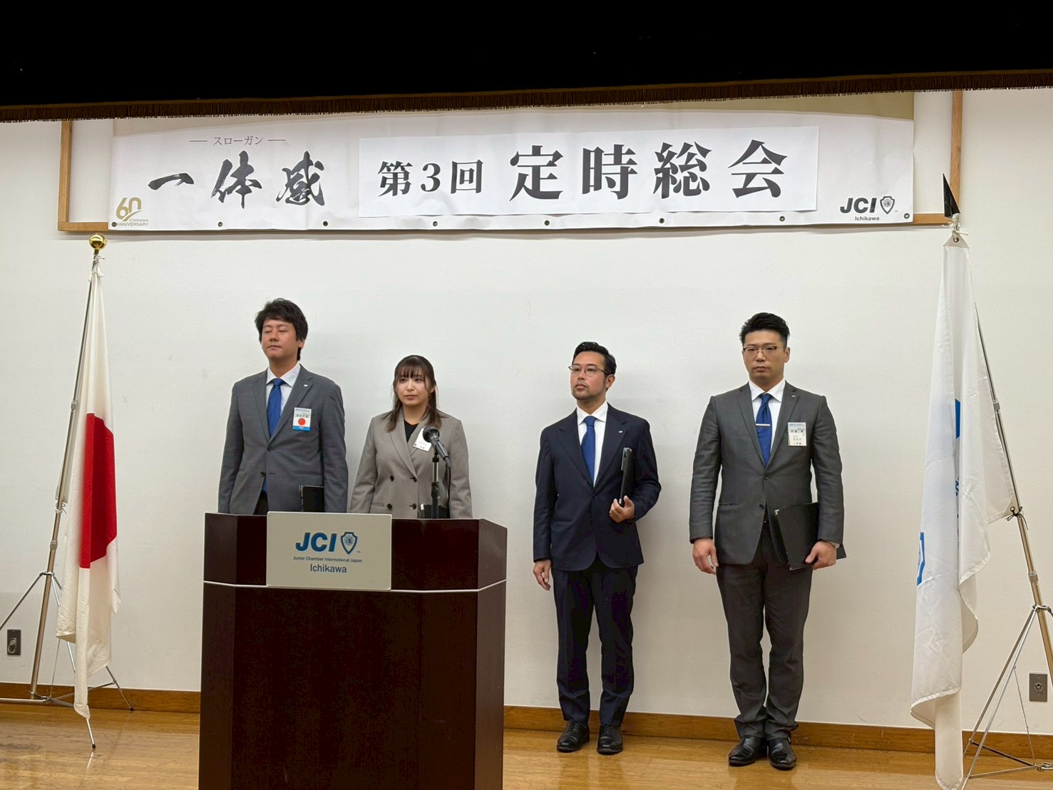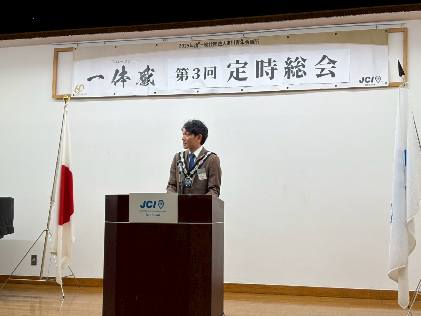 11月20日は一般社団法人市川青年会議所の第3回定時総会が執り行われました。 議題は2026年度の理事長所信、事業方針、理事役員、組織図、2026年度当初予算などを審議可決いただき無事2026年度のスタートに向けて準備が整いました。 現在、76名の会員数で事業、運動を展開しております。 今後も新しい仲間と共鳴し、会員数向上を目標に駆け抜けてまいります。 引き続き市川青年会議所にお心を寄せていただければ幸いです。